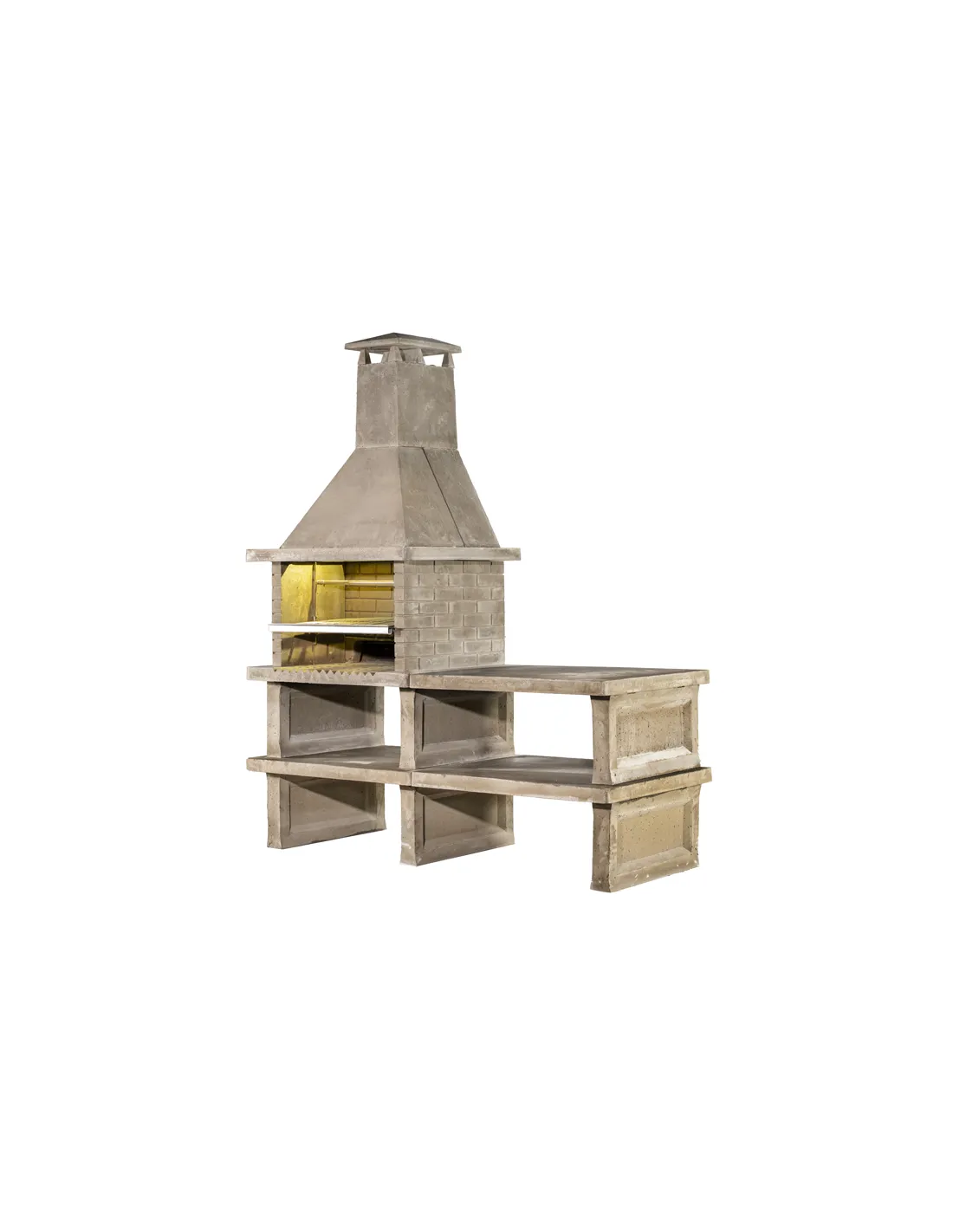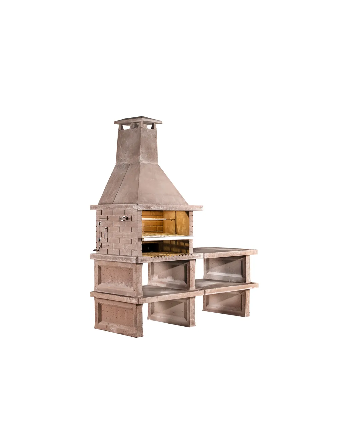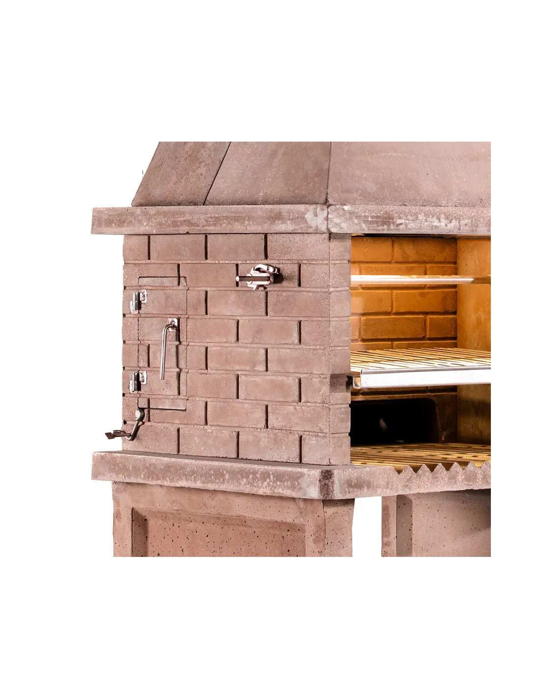 - Parrilla completamente en inoxidable con soporte y elevador lateral, puerta del alimentador de leña lateral derecho (consultar cargador izquierdo) Se incorpora rastrillo para brasas.