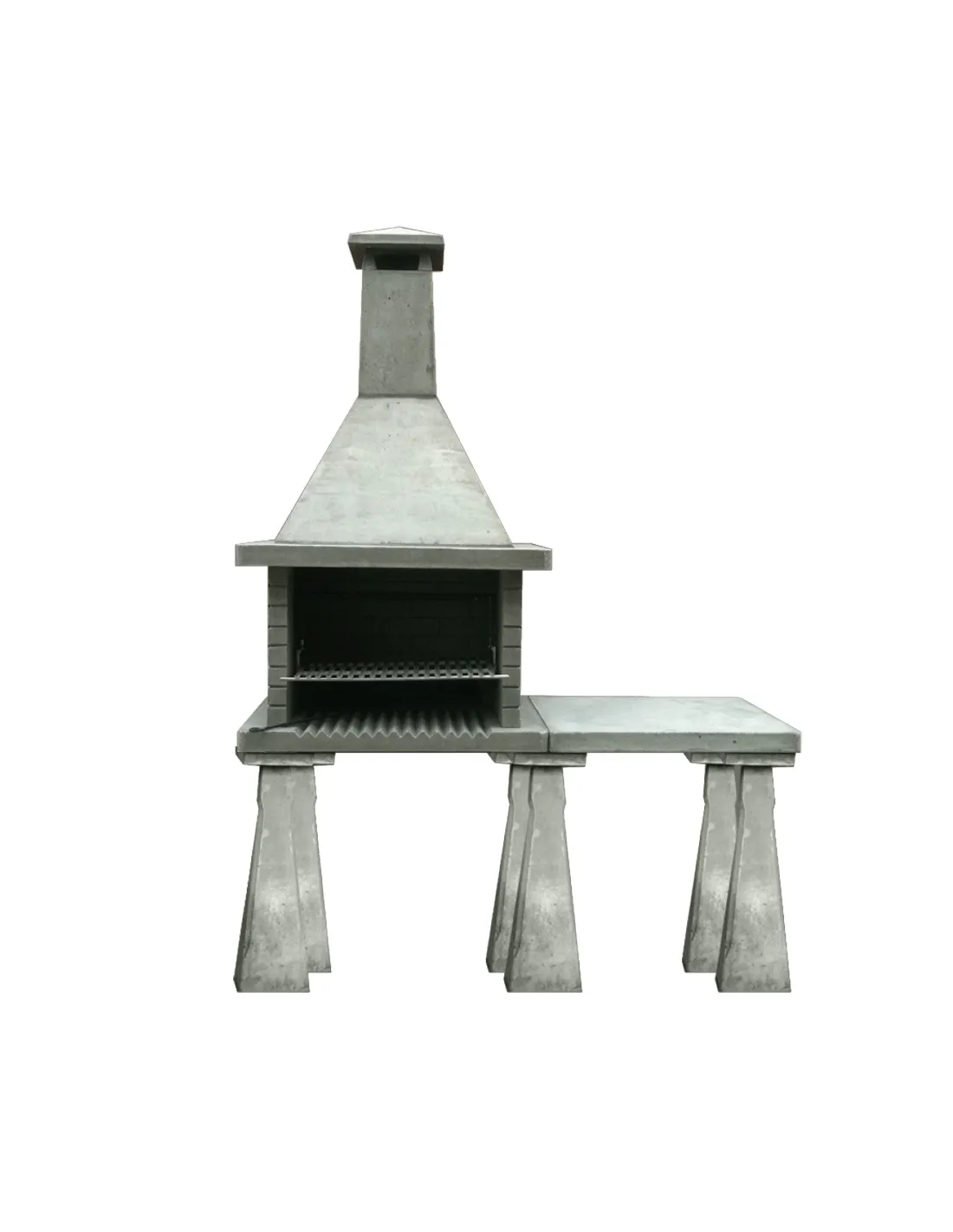 - Parrilla completamente en inoxidable con soporte y elevador lateral, puerta del alimentador de leña lateral derecho (consultar cargador izquierdo) Se incorpora rastrillo para brasas.