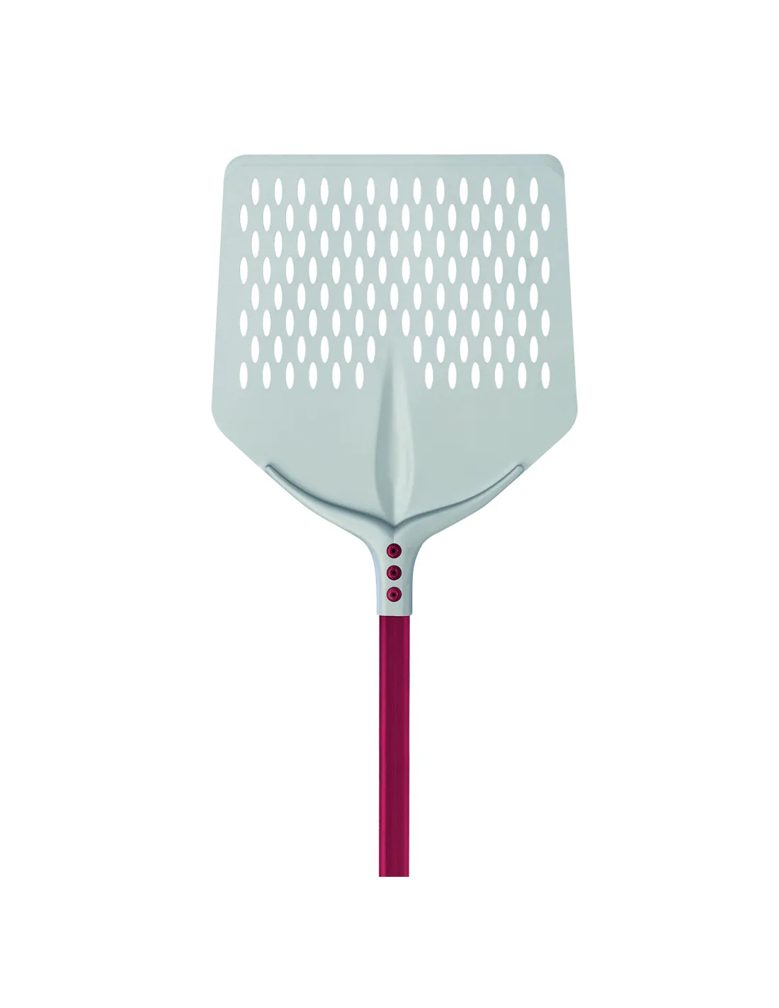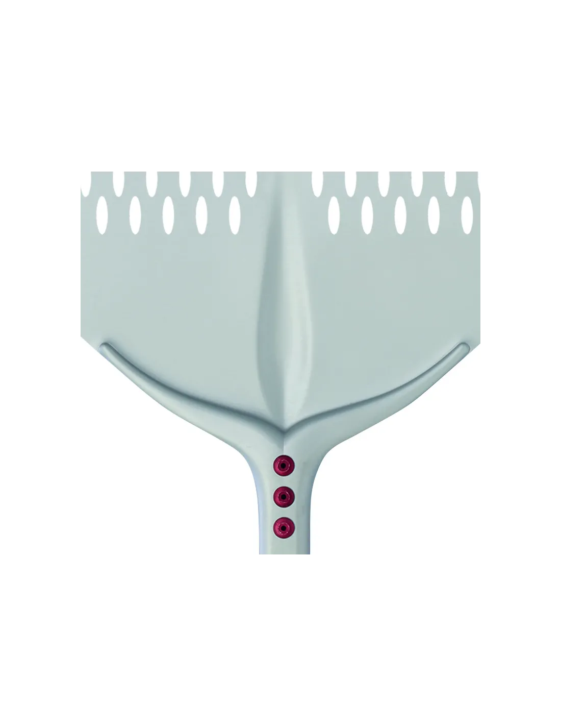 Fabricada en aleación de aluminio anodizado, su particular e inconfundible forma de "cola de delfín" fue diseñada por el arquitecto Itamar Harari, siempre muy atento a la elegancia de los detalles. Su nombre se inspiró en el primer prototipo redondo, que recordaba a la flor del tulipán. No solo diseño, sino también calidad: la particular nervadura de la pala Tulipán le otorga estabilidad y resistencia al uso intensivo. Promovida por la Asociación Nacional de Pizzeros de Italia, muy apreciada por los más destacados profesionales del mundo.