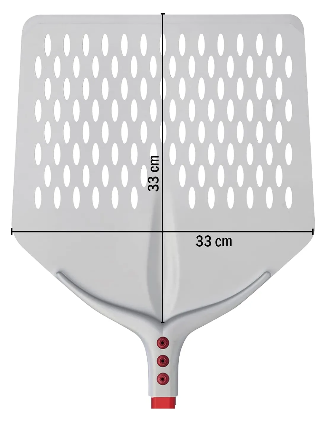 Las palas perforadas permiten eliminar o al menos reducir considerablemente estas desventajas (humo, residuos, sabor amargo de la pizza). Máxima suavidad: Menos superficie significa menos fricción.